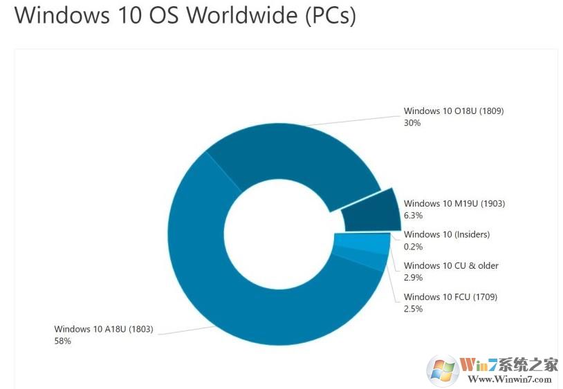 Win10 1903五月版更新占有率6.3%略有提升,1803仍旧增长