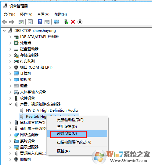 3、如声卡重装驱动之后还是无效,那么我们就得重装显卡的驱动了。具体步骤和重装声卡一样。