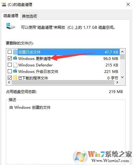 3、这时候要等待一段时间,勾选windows更新清理,确定。