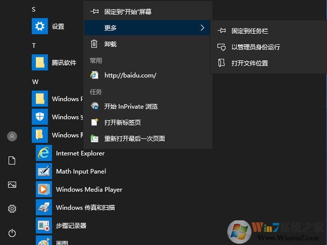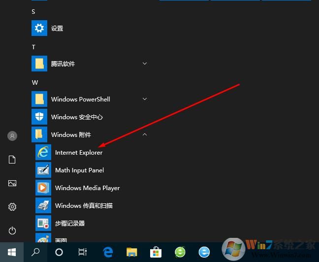 我们可以在开始菜单——Windows附件中找到IE浏览器,如下图