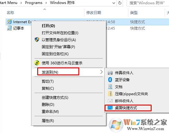 右键点击internet explorer图标,右键点击发送到桌面快捷方式。