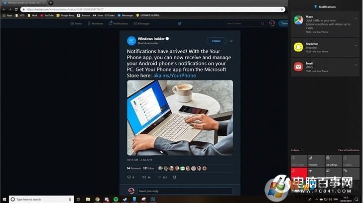 此前将Android手机与“你的手机”应用同步后,你可以在电脑上阅读和回复短信,查看手机上的照片,甚至可以拖放文件。但此次更新后,该应用程序将变得更智能,会在电脑上展示手机收到的任何通知消息。