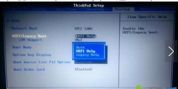 2、但Startup下的UEFI选项呈灰色无法更改;