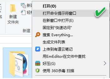 3、之后,当我们在任意一个文件夹上单击鼠标右键之后,便会发现“打开命令提示符窗口”的选项。选择该命令之后,即可进入该文件夹的命令提示符窗口,如下图所示: