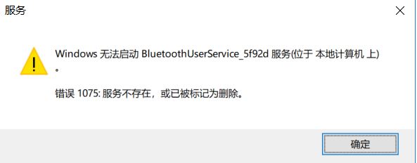 Win10无法启动BluetoothUserService蓝牙服务错误1075解决方法