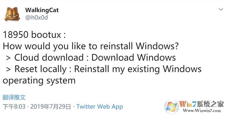 根据爆料,在win10 Build 18950启动页面中,给出了如何重新安装Windows的选项,包括: