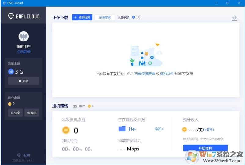 3、ENFI下载器(轻狂按:用临时用户试了一下,速度还不错。赚钱功能看看就好,请自行评判。)