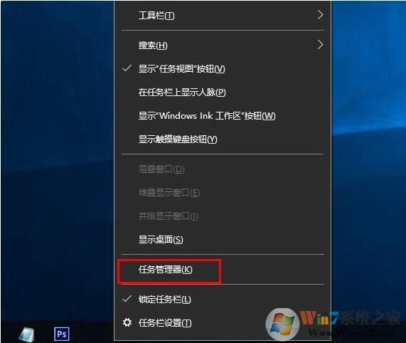 我们在设备管理下查看的CPU是核数+线程数总和,所以如果想要查看具体几个核心几个线程,我们还可以使用其它的方法来查看。以Win10系统为例,我们将鼠标指针移动至任务栏空白处并右键之后选择“任务管理器”,如下图所示。