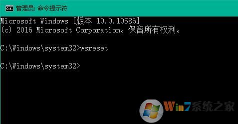 5、最后打开win10电脑的命令提示符窗口,然后在打开的窗口中输入命令wsreset并按回车,清除缓存文件即可,如下图所示: