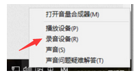 2、右键选择录音设备,进入麦克风设置界面;