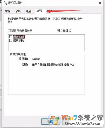 6、在增强选项栏下,我们可以选择噪音抑制和回声消除两个选项,设置完成后点击确定保存即可。