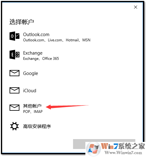 四、选择邮箱账户类型,例如163、126邮箱,请选择“其他账户 POP、IMAP”;