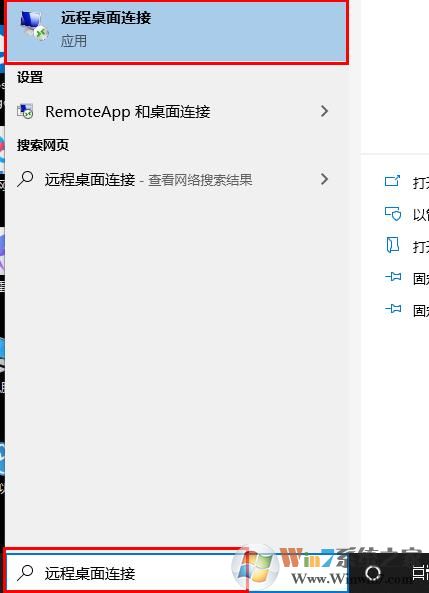 5、之后,在其它电脑上,在任务栏搜索“远程桌面连接”并打开