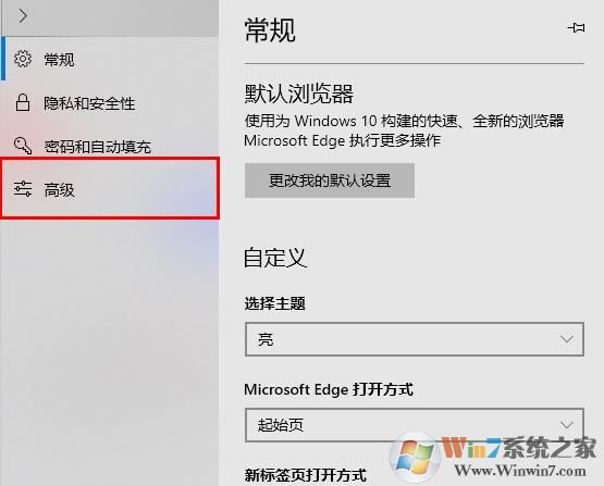 2、点击左侧的“高级”如下图Edge操作界面。