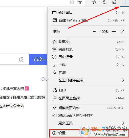 1、进入浏览器点击右上角的三个点,选择“设置”。