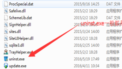 2、进入后,将文件夹放到最下面的部分,找到底部的程序:uninst.exe双击该程序,它会自动弹出卸载弹出窗口。(或者大家也可以去控制面板的卸载中找到鲁大师开始卸载过程。)