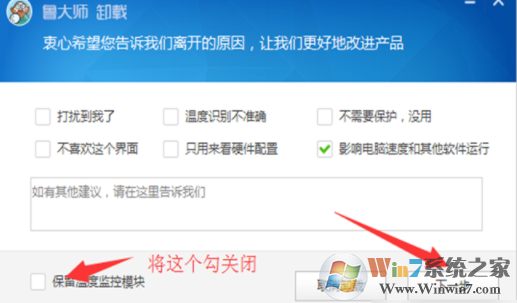 通过以上步骤,我们就可以把鲁大师卸载干净了,第6步大家一定要记住,取消勾选保留温度监控模块,鲁大师主要会用这个模块来推送广告。
