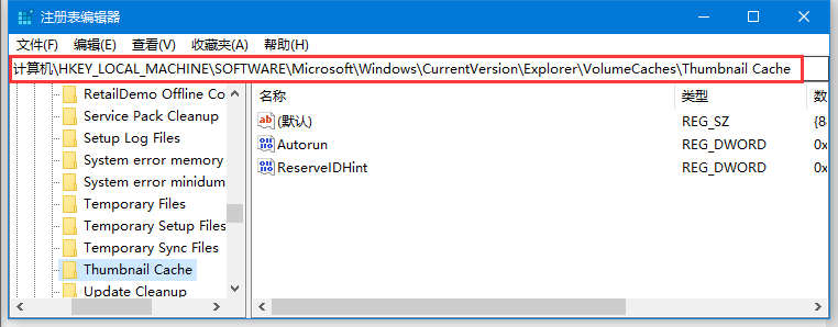 2. 此时再打开注册表路径:“HKEY_LOCAL_MACHINE\SOFTWARE\Microsoft\Windows\CurrentVersion\Explorer\VolumeCaches\Thumbnail Cache”