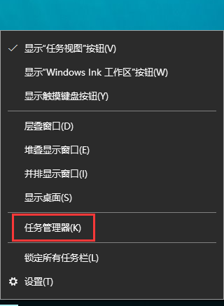 1、在Windows 10系统的任务栏图标中击右键,在弹出的菜单中点击选择“任务管理器”选项,打开Windows 10系统的任务管理器。