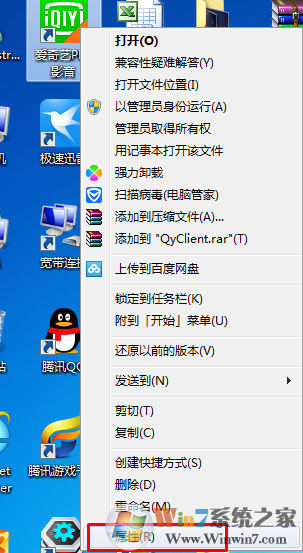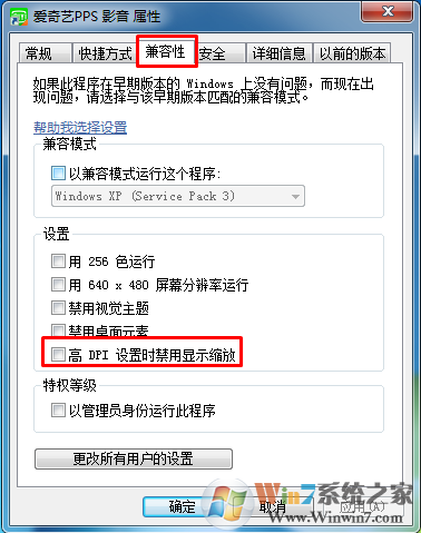 右击需要更改的图标,点击-“属性”-“兼容性”-“更改所有用户的设置”;