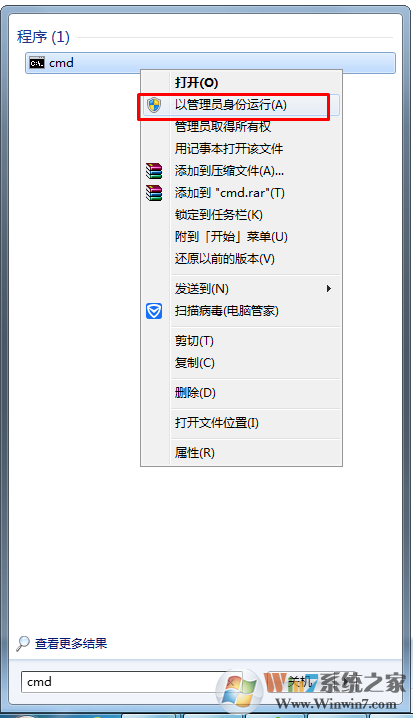 1、以管理员身份运行“命令提示符”,可在开始菜单或开始屏幕搜索框中输入CMD,然后在结果中点击右键,选择“以管理员身份运行”。