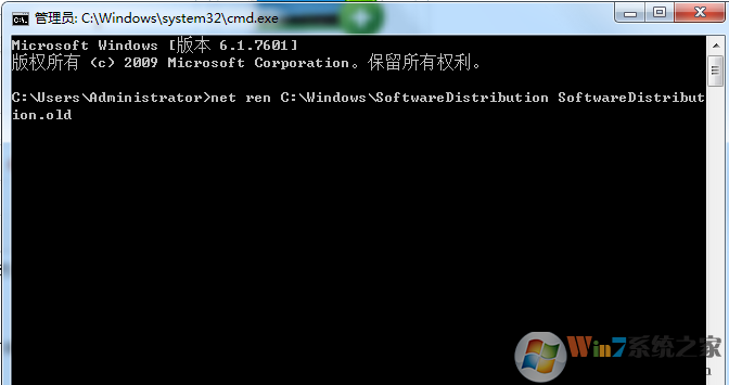 3、重命名 SoftwareDistribution 和 Catroot2 文件夹,命令如下(每行命令输入之后都要按回车执行):