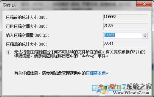 4、然后就是分区的大小了,个人建议分个 50G 出去最好,然后等待,最终结果如下:压 缩后会发现多出一块 未分区磁盘(绿色分区),如果选择的压缩大小是 50G, 则绿色的的应该是 50G 可用空间。