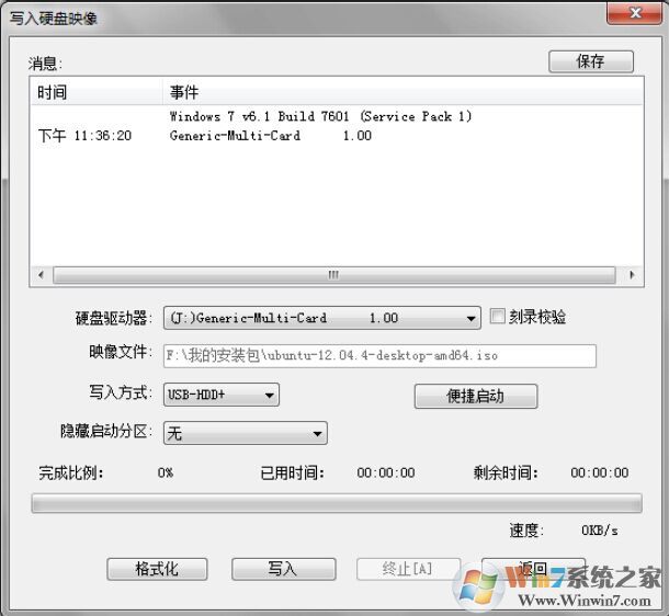 4、在 U 盘格式化完毕之后,选择写入,之后就是慢慢等待了,等待写入完毕