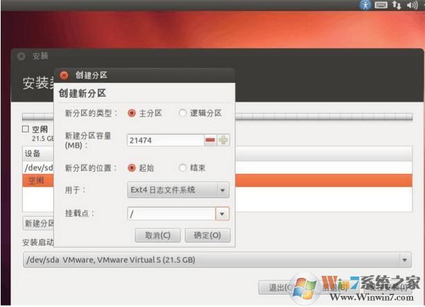 1)、/:这是 linux 也就是 ubuntu 的根目录就一个反斜杠表示, 我们将其分为 25G,文件格式为 ext4
