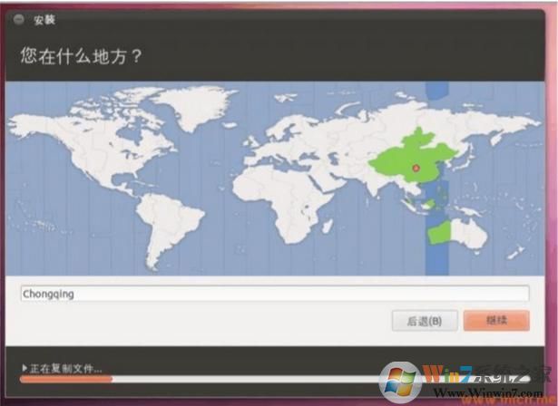8、选择继续,进入下一步操作,并设置地区为:chongqing,按你需要设置,在下一步操 作中选择语言