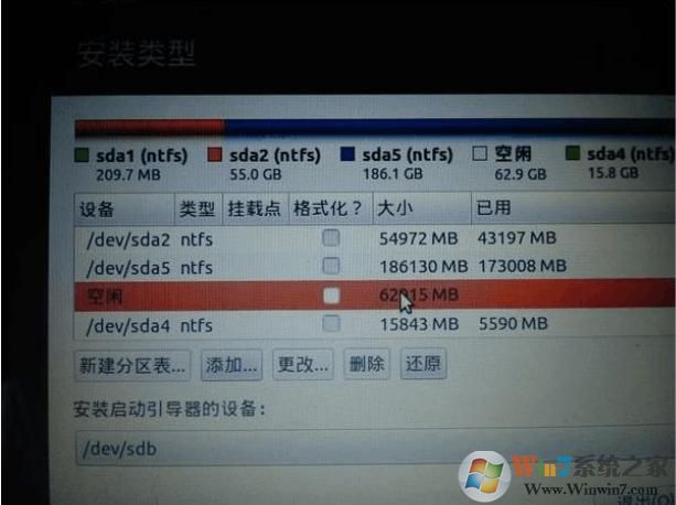 看到没有,里面会有一个空闲分区,也就是我们之前所创建的那个分区