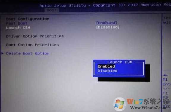 3、接着切换到Boot,选择Launch CSM按回车,修改成Enabled,按F10保存退出;