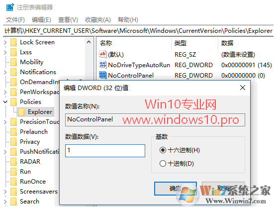 以后想要恢复时,把NoControlPanel值的数值数据修改为 0 ,或直接删除该值即可。