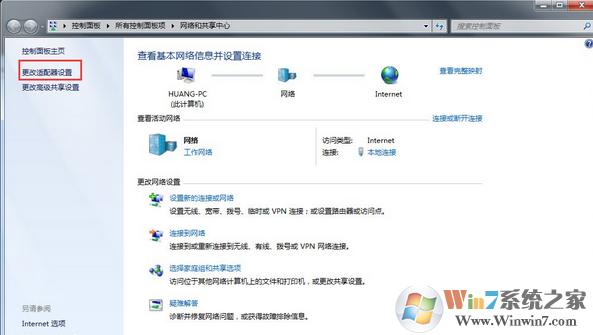 3、点击左侧的“更改适配器设置”,如下图所示: