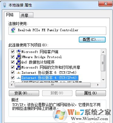 5、咱们现在用的IP基本都是IPV4,所以点击“Internet协议版本4(TCP/IPv4)”,如下图所示:
