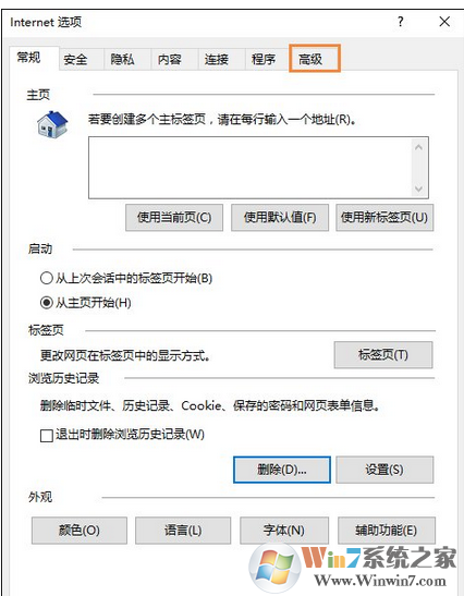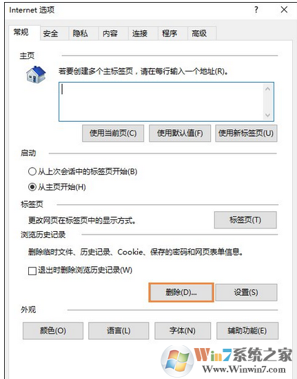 3、在弹出的对话框中,进入常规选项,点击下方浏览记录处的【删除】;