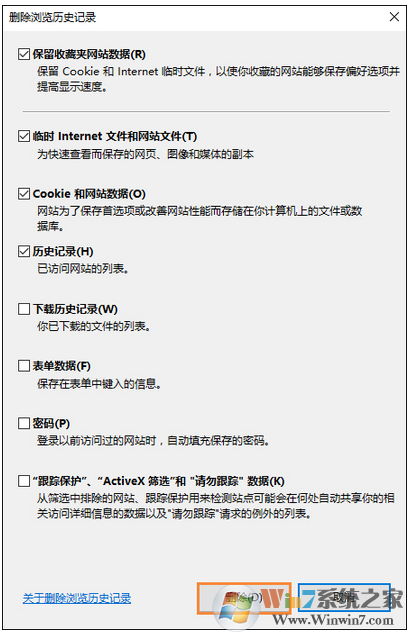 4、进入删除浏览器记录对话框,勾选所有选项,进行清除;