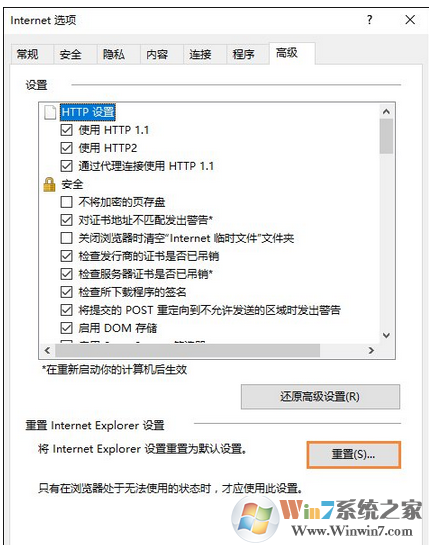 6、进入高级界面,找到【重置internet Explorer】,点击后方的【重置】;