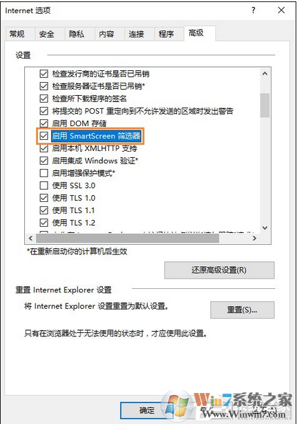 3、勾选“启用SmartScreen筛选器”确定。