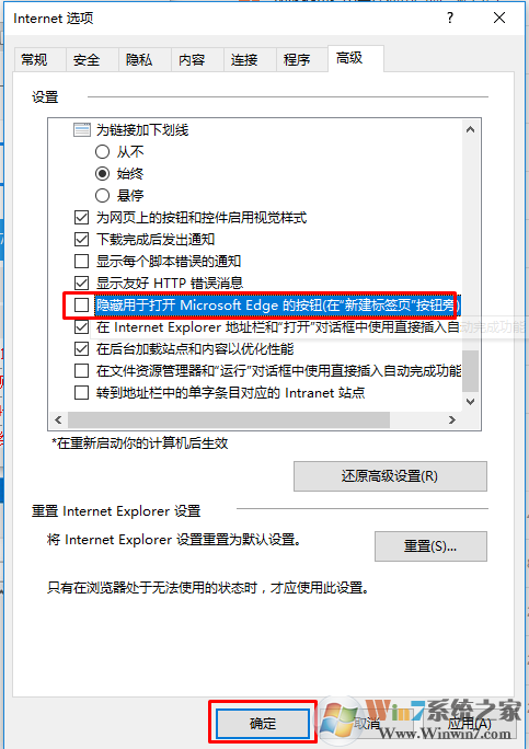 方法一:使用Internet选项移除“打开Microsoft Edge”按钮