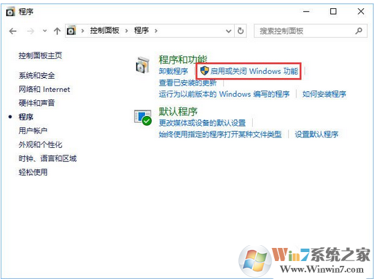 3、在程序界面点击“启用或关闭Windows功能”。
