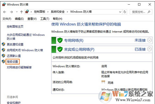 2、点击“Windows 防火墙”之后,打开“高级设置”;