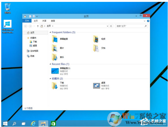 4、再说资源管理器新增了一个“主页”,就是打开资源管理器后的第一页,显示了最近使用过的文件夹,nice,我很喜欢,不用东翻西找很不错,而且显示很全面哦。