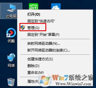 1、在桌面上右键电脑图标,打开管理选项。或者使用组合键win+x找到任务管理器。
