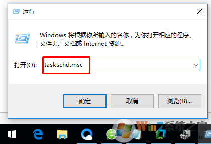2、按下win+r 组合键打开运行,输入taskschd.msc 点击确定打开【任务计划程序】;