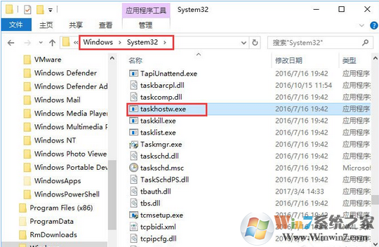 2、到正常的win10系统中拷贝一份 Taskhostw.exe,放入此文件夹中,然后重启。