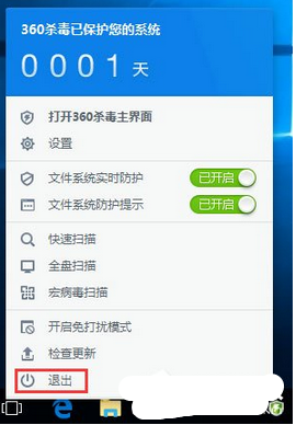 在不需要使用360杀毒软件的时候在任务栏中找到360杀毒,在该图标上单击鼠标右键,选择【退出】即可。