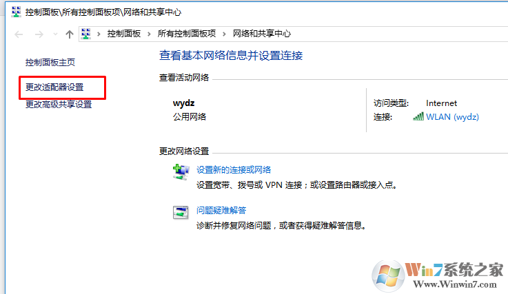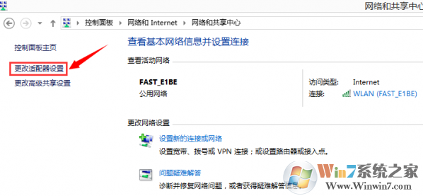 2、接下来我们点击"更改适配器设置",如下图所示: