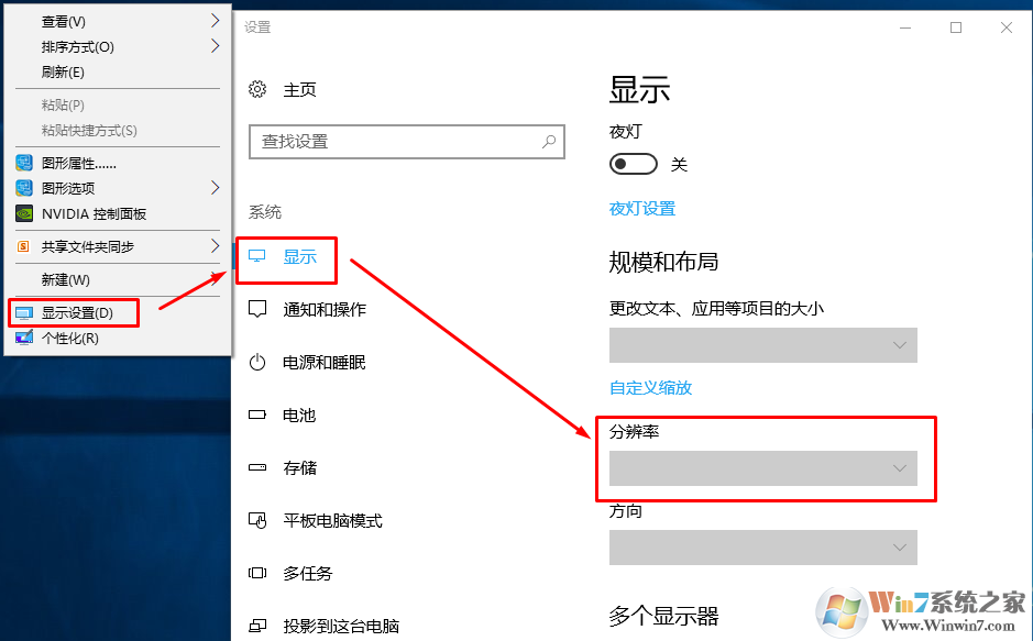 2、如果右键菜单找不到图形选项,那么在桌面菜单上找到显示设置--显示---分辨率。