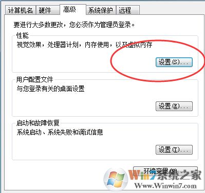 2、选择系统,点击高级设置,在性能选择里点击设置。